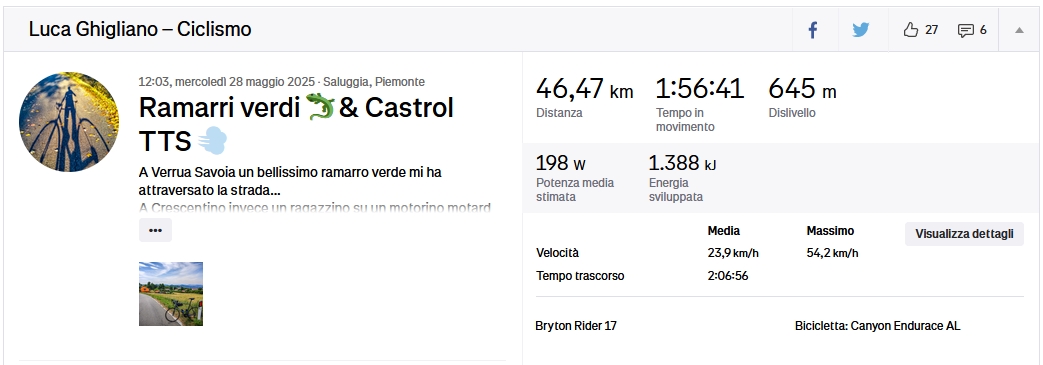 Dopo la visita sportiva annuale, ho comprato un cardiofrequenzimetro e un sensore di cadenza. Da quel momento il mio approccio è cambiato: ho iniziato a fare davvero un mirato allenamento di ciclismo in Z2 e cardio, con dati reali invece che sensazioni.