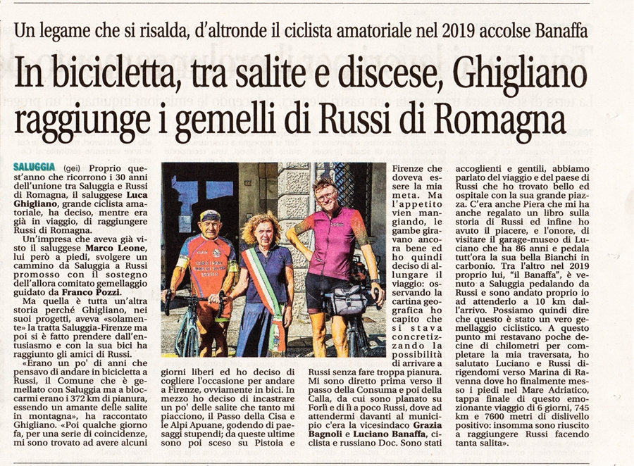 Ad attendermi c’è Anna Grazia, la vice sindaca di Russi e il Luciano detto Banaffa che avevo incontrato nel 2019 quand’era venuto pedalando da Russi a Saluggia all’età di… 79 anni!!!