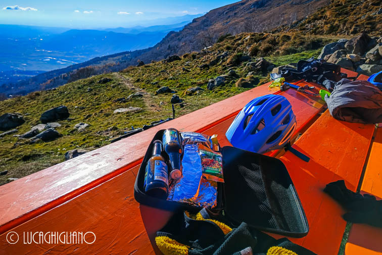 Arrivi in cima all’Alpe Pinalba e Sandrino sfodera un kit di sopravvivenza: