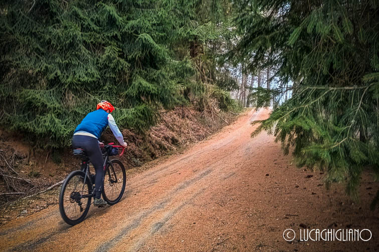 La temperatura è rimasta tra i 3 e i 6°, ma durante la salita il freddo lo abbiamo patito poco: le pendenze ci hanno letteralmente scaldati e, arrivato alla Big Bench Andrate, ho dovuto cambiarmi perché ero completamente fradicio.